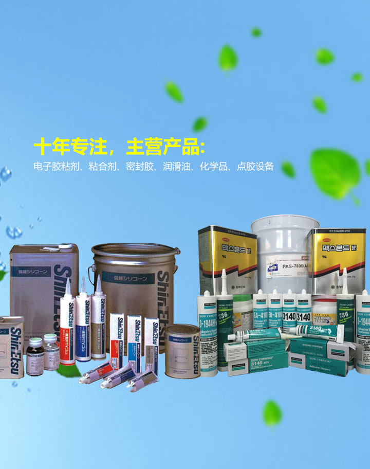 經(jīng)過(guò)10年的發(fā)展,公司已成為優(yōu)質(zhì)的產(chǎn)品代理和膠粘解決方案的提供商,目前主要的代理產(chǎn)品有:美國(guó)道康寧系列,日本信越系列,東部化學(xué)系列,韓國(guó)樂(lè)泰系列等。公司產(chǎn)品廣泛應(yīng)用的行業(yè)有:汽車(chē)、電子、光電、機(jī)電、電器、醫(yī)療、航空、通訊等行業(yè)電子元器件、零部件、模塊組件,為其提供線路板粘接、密封、灌封、披覆、潤(rùn)滑、導(dǎo)熱、絕緣等全面的膠粘與潤(rùn)滑解決方案。